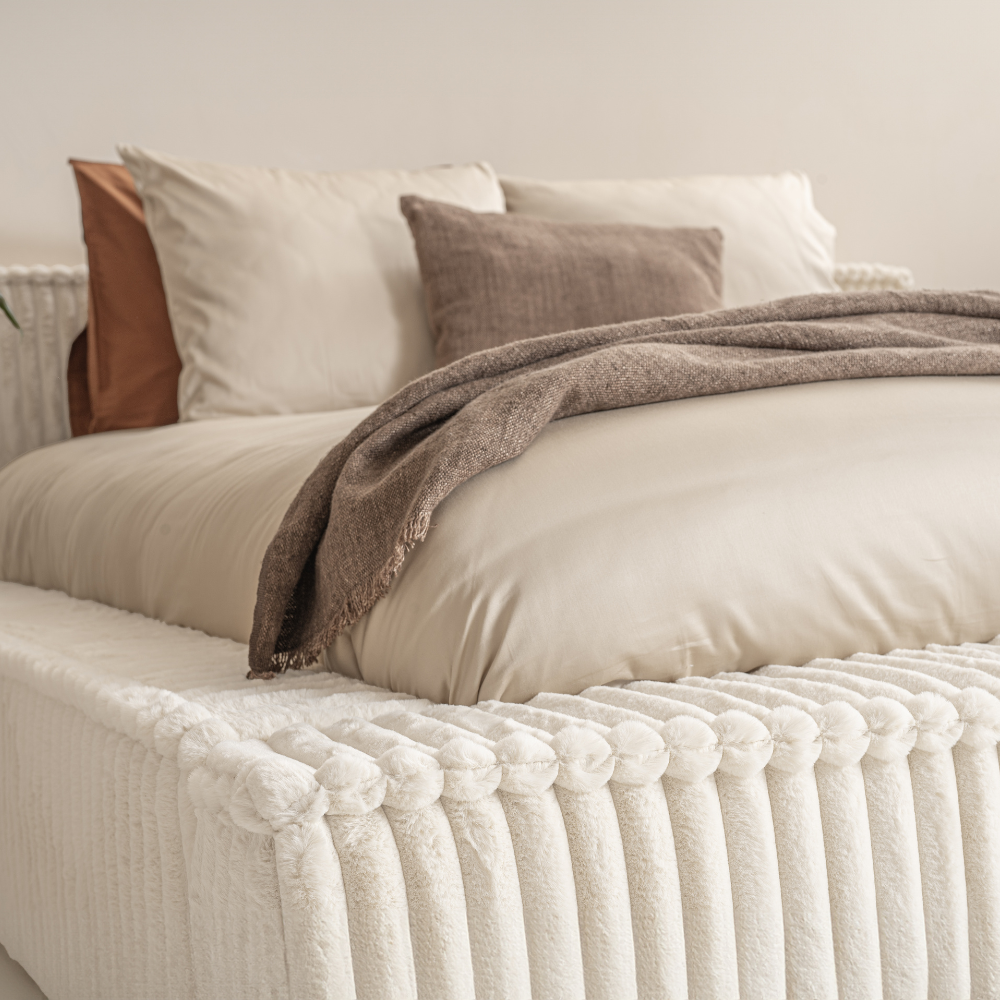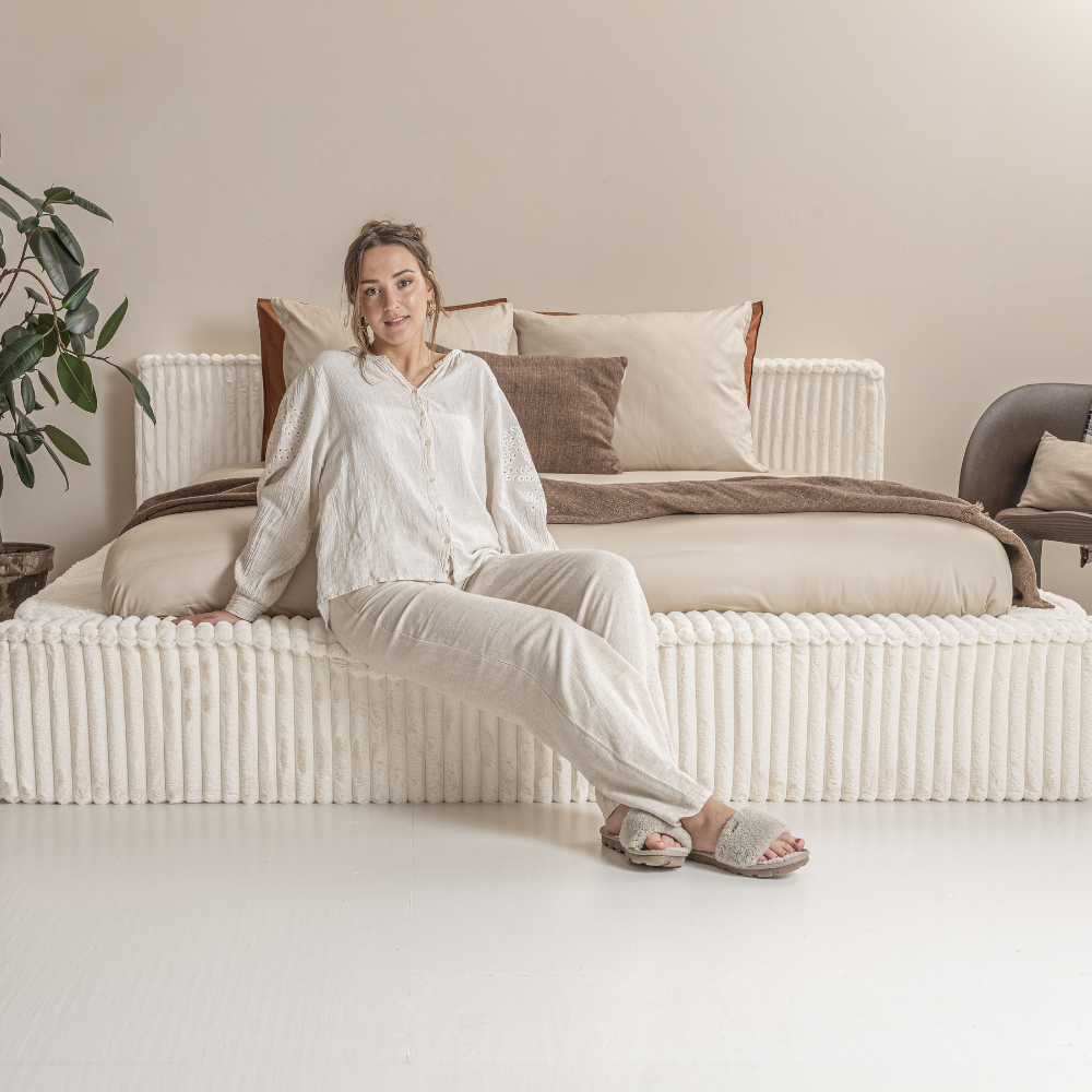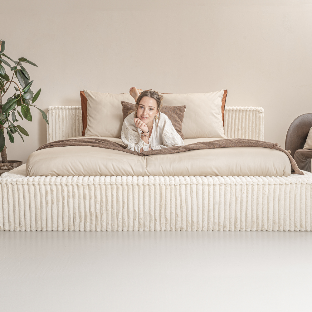 Ervaar de ultieme luxe met ons Adore Melody Opberg Ledikant, ontworpen voor de veeleisende slaper die stijl en comfort zoekt. Het bedframe is bekleed met een verfijnde 100% polyester rib teddy stof, die niet alleen zacht aanvoelt maar ook een warme, uitnodigende sfeer creëert in elke slaapkamer. Het strakke hoofdbord, met een indrukwekkende hoogte van 86 cm, steekt aan beide zijden 10 cm uit en vormt de perfecte afwerking voor uw slaapkamer. Deze extra uitsteken geeft het bed een elegante uitstraling, terwijl het bedframe zelf een solide basis biedt voor een goede nachtrust. Verkrijgbaar in verschillende afmetingen, biedt dit ledikant een ideale balans tussen design en functionaliteit.